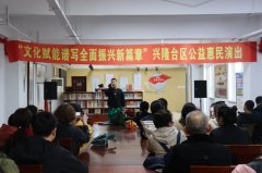 文化赋能谱写全面振兴新篇章兴隆台区公益文化惠民,在康桥社区举办,活动 由兴隆台区文化和旅游发展服务中心、惠宾街道办事处主 办;兴隆台区文化馆、康桥社区新时代文明实践站承办。 通过群众喜闻乐见的文艺节目,反映新时代火热生活的作品,反映社情民意、...