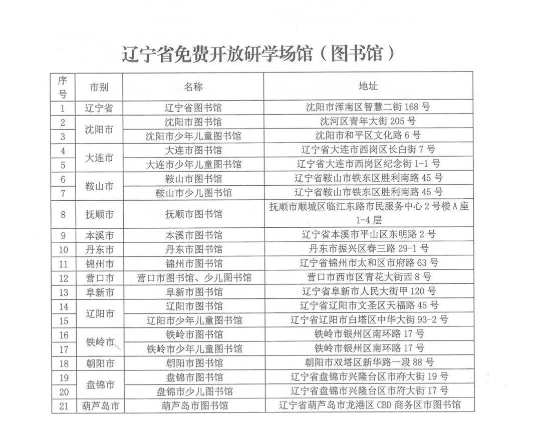 11月1日,省教育厅、省文化和旅游厅公布我省首批免费开放研学实践活动场馆名单,包括全省89个博物馆和21个图书馆,为中小学生研学实践活动提供优质服务。 我省公布首批免费开放研学实践活动场馆名单,旨在深入学习贯彻党的二十届三中全会和新时代第二次全国教育大会精神,落实中共中央办公厅、国务院办公厅印发的《关于构建优质均衡的基本公共教育服务体系的意见》,以及教育部等11部门《关于推进中小学生研学旅行的意见》部署,按照《辽宁省教育厅关于开展中小学生研学实践活动的通知》要求,我省进一步推动中小学生开展研学实践活动,在“行走的课堂”中增长见识,收获新知。