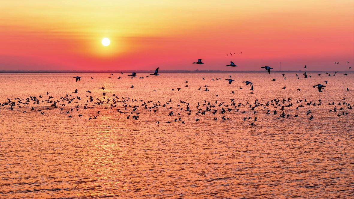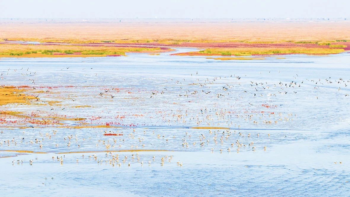 连日来,61岁的谢刚每天早出晚归,用镜头记录下了候鸟在素有候鸟补给站之称的辽河口湿地嬉戏觅食、补充体力的画面。鸟儿们觅食嬉戏,忽而水中漂浮,忽而高空盘旋,忽而贴着水面疾速飞行激起长长的水花,又或逐日集群飞行……镜头里,鸟儿们安逸地生活着,这道独特的亮丽的风景线是珍贵的印记,其背后还有着深刻的湿地修复理念和政策支撑。