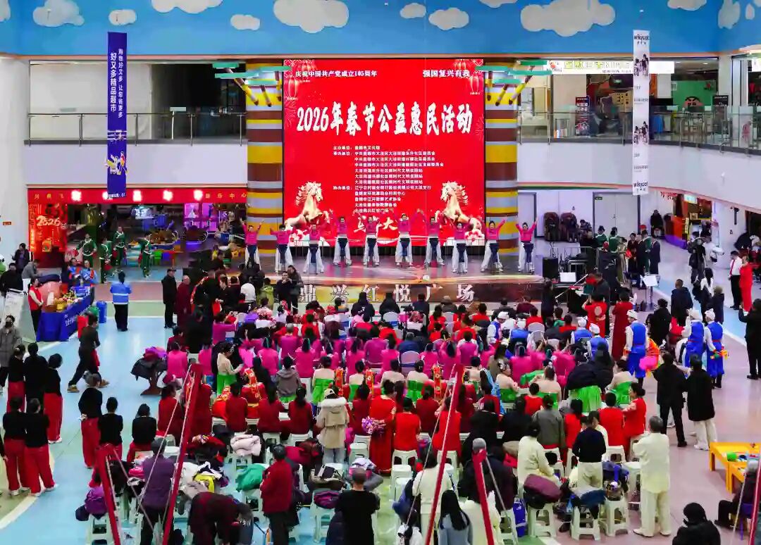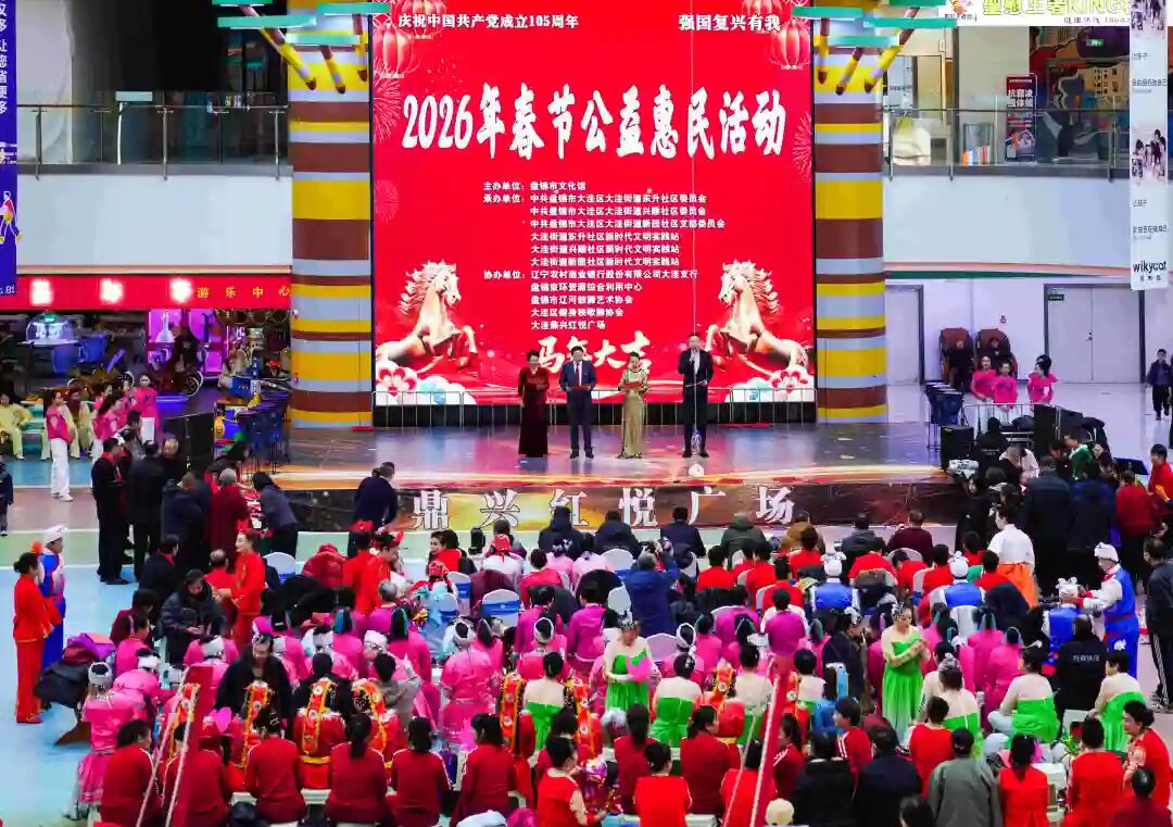 2月6日下午,由市文化馆主办,大洼区大洼街道,大洼街道东升社区、兴顺社区、新园社区以及所属新时代文明实践站联合承办的“2026年春节联欢文艺汇演”公益活动在大洼鼎兴红悦广场举办,辖区居民欢聚一堂,在非遗体验与欢歌热舞中喜迎马年新春。