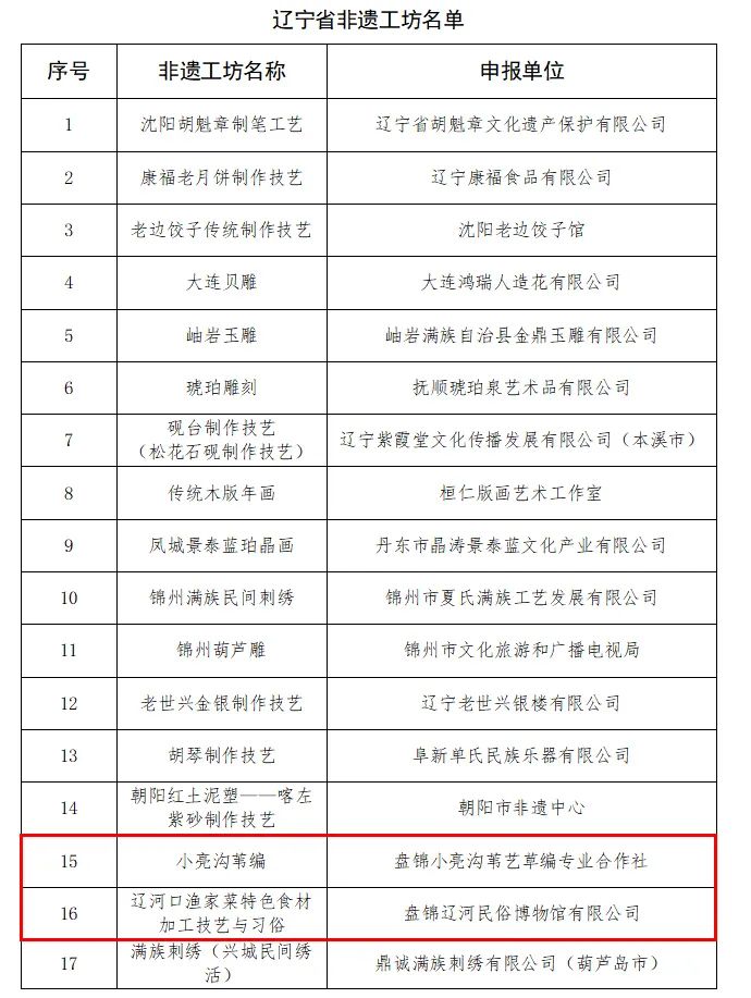 榜上有名!盘锦两家非遗工坊