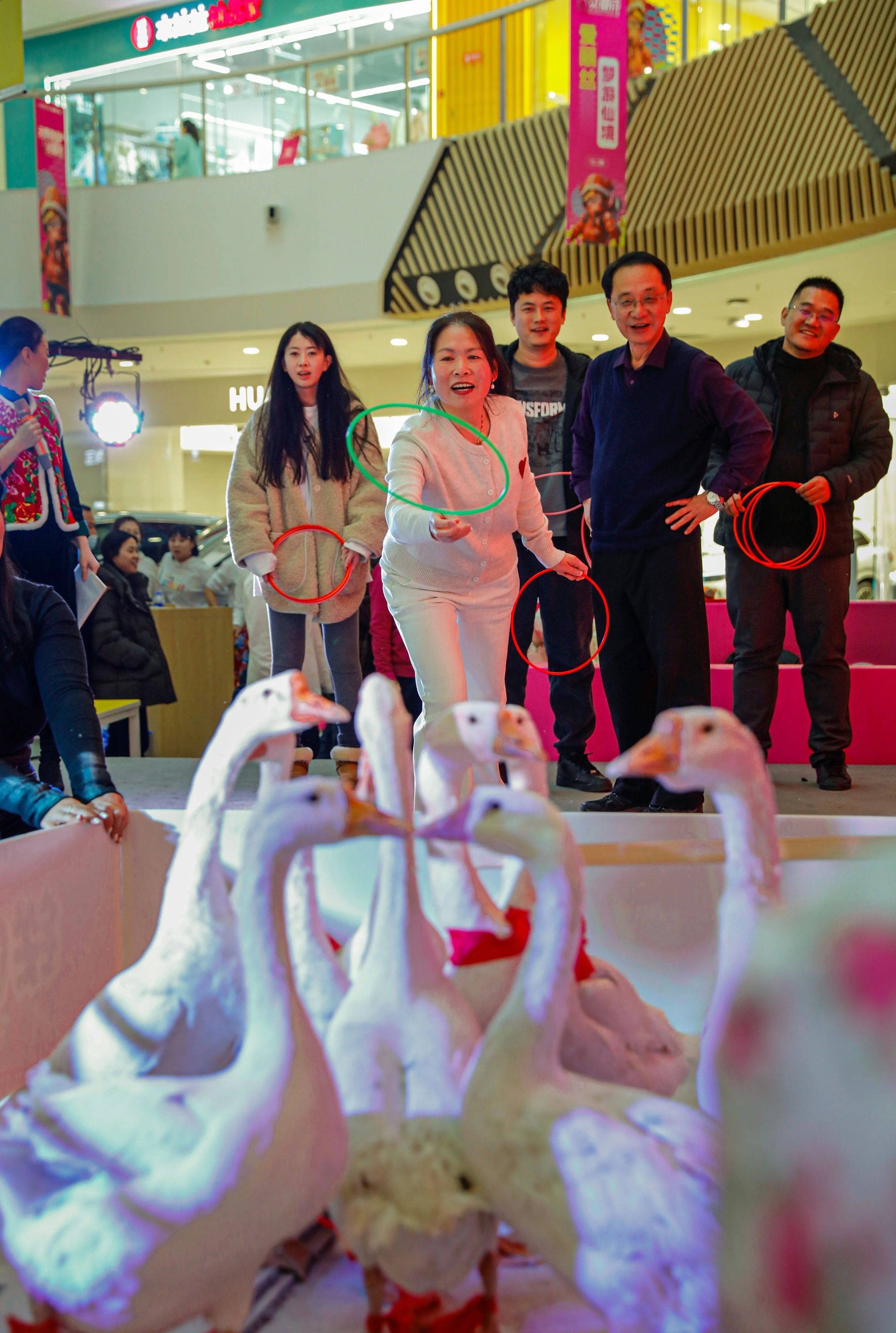 互动游戏《铁圈套大鹅》将现场气氛推向了高潮,村民们踊跃参与,现场笑声不断。幸运套中大鹅的村民满脸喜悦,表示今晚就要铁锅炖大鹅。