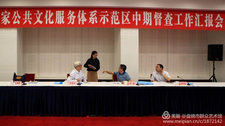 2017年7月21日至23日,国家文化部对盘锦示范区创建工作进行中期督查。吴建中,倪巍,王珊珊,沈宇豪等专家组成员,对创建工作进行了全面检查。我市创建工作阶段性成果得到了全面展示。