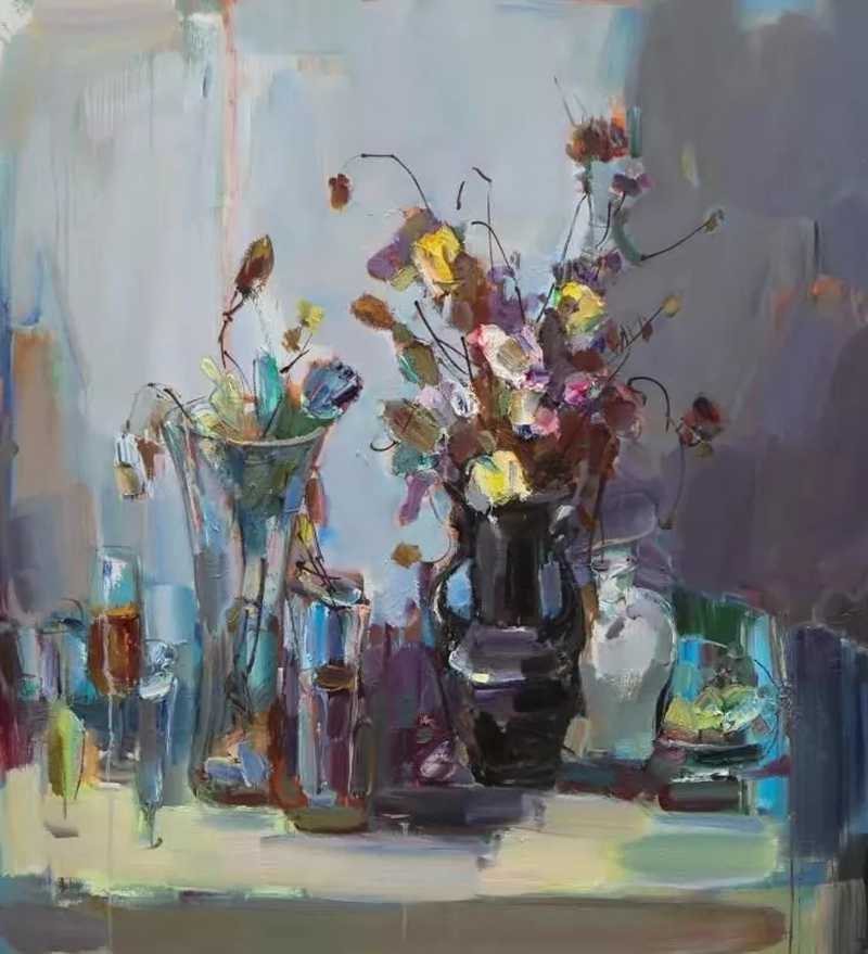 以抒情所理.以"寫"為味.对色域处理.己具獨有風格.趣味無限.意态天成……時而現实情景跨越.時而浪漫寄于情思.時而色彩紛呈碰撞的較量.時而喘息后淡淡的哀傷.不見精雕細琢.不見矫情肆意.似而不似.不似而似.花看雾里.意犹未尽.靈魂的牵引.心靈的触动.拨动着的心弦⋯⋯