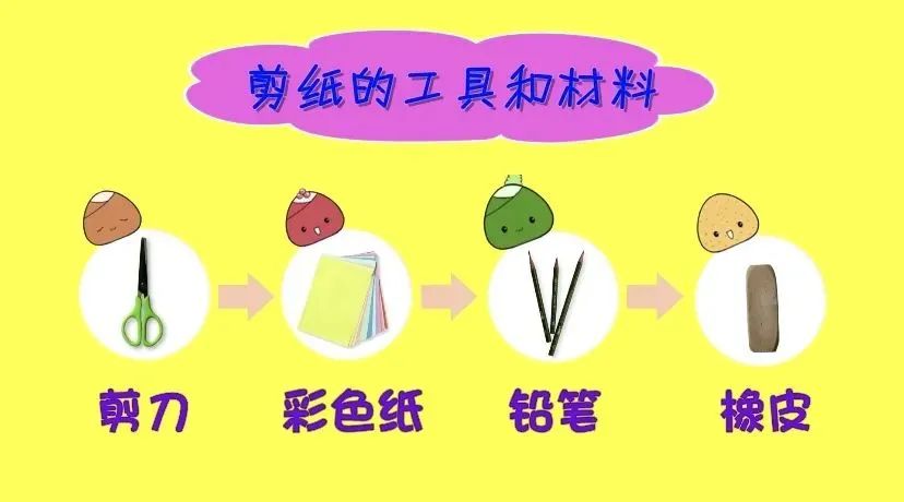 今天的课程需要的材料有:剪纸、铅笔和剪刀,小朋友们使用剪刀的时候要注意安全。